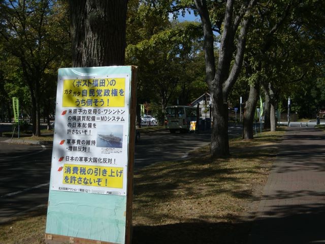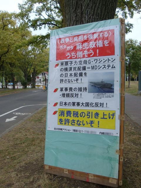 《注意事項》 ・廻された方は3日以内にしてください ・嘘書いちゃダメ ・アンカー禁止 ・廻した方がルールを守っているか確認してください ・守ってない時は罰ゲーム 《罰ゲーム》 ・3日間、語尾に『にゃん』を付けるの刑 ・さらにその後3日間語尾に『ですの』をつけるの刑 ・3日間自分の一押しの萌えキャラを語るor絵を描くの刑 ・さらにその後3日間語尾に「ハァハァ」をつけるの刑 《廻される方々5名》 麻生太郎 太田昭宏 小沢一郎 志位和夫 福島みずほ 1:あなたの名前は? Devil 2:歳はいくつ? 投票権を得ず 3:好きなものは?! モノ? ラジオ、Mac、最近買ったデジカメなど 5:好きなタイプは? 好きなタイプは好きになった人 6:好きな漫画・小説・ゲーム・映画は? クレヨンしんちゃん 嵐を呼ぶ モーレツ!オトナ帝国の逆襲 クレヨンしんちゃん 嵐を呼ぶ アッパレ!戦国大合戦 7:好きな食べ物は? 魚 肉 サービスエリアで売ってる肉まん 山陽自動車道竜野西サービスエリア上り線レストランの豚汁定食についてくる炊き込みご飯 8:好きな音楽は? いろいろある。 iTunesには The Beatlesから中島みゆきから大塚愛から もんすけ1BANのうた まで色々入ってまっせ。 9:廻してくれた人は? txcxtc 10:廻してくれた人の心の色は? 1,670万色 11:最後にあなたが廻す人達の心イメージカラー 麻生太郎 黒 太田昭宏 暗黒 小沢一郎 腹黒 志位和夫 赤 福島みずほ だんだん薄く この方々が 『・3日間、語尾に『にゃん』を付けるの刑 ・さらにその後3日間語尾に『ですの』をつけるの刑 ・3日間自分の一押しの萌えキャラを語るor絵を描くの刑 ・さらにその後3日間語尾に「ハァハァ」をつけるの刑』 に処されるのが楽しみであります。 <追記> いろんな大学にいると思うけど、北大の中には 『福田政権を打ち倒そう』なんて看板をそこらじゅうに建てるような団体が居るんです。 福田サンが辞任表明してから、早速こんな看板 (※クリックで拡大) が建ってて、仕事早いなぁとか思ってたんだけど、 今日見たら (クリックで拡大) こうなってましたw 仕事早えぇ…ww まぁ、メッセージの内容的には前者の方が通ってる感じはするけどね。