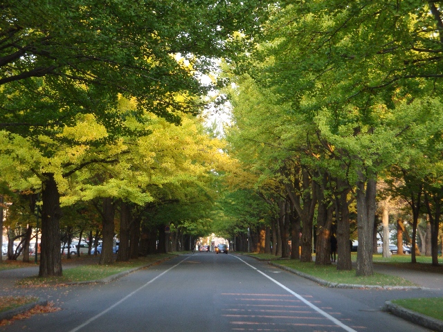 一昨日旭川では気温がマイナスになったそうです。 でも札幌は、だいたい夜は5〜10℃くらいです。全然あったかいですね(←強気) いや、実際着る服ミスると寒い。 いつのまにか学校が始まっちゃって、始まっちゃうと何気に色々あって、忙しいというか、もちろん前期ほどじゃないけど何だかんだで暇ではない日々を送っております。 前回の旅日記みたいなので、「次の旅に出た」って書いたでしょう。あれ、その「次の旅」にも少し触れるつもりだったんだけど、いつのまにか1か月以上経っちゃったんだよね。どうしようかな。 次回以降に先送りね。 で、学校が始まった訳です。 そうすると、前期の成績表なんてのも配られるんだけど、ある講義に欄に って文字を発見しちゃって凹みました。 トホホ。。。。。。 あんまり成績悪いと、2年後期のコース分属に響いてくるんでね、下手したら人生がらっと変わっちゃう。大変です。 さて。 北大の有名なイチョウ並木が紅葉し始めております。 この紅葉し始めの、緑と黄色のグラデーションが何ともイイ感じというか、我ながらうまく撮れたなと思うんだけど、 何か、北大がオフィシャルにこんなページまで作っちゃってるらしいw ↓ 平成20年イチョウ並木黄葉状況 北海道大学 Hokkaido University ちゃっかり「地下鉄南北線北12条駅から徒歩5分」なんて情報も載せちゃってるしw まるで観光地のウェブサイトww しかも何コレwww 去年の様子 2日で14000人来るってどんだけよwwwww